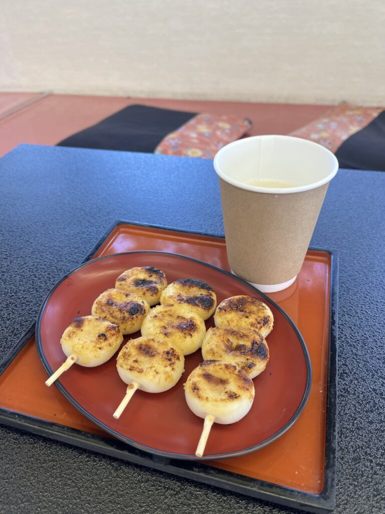 茶店で過ごす時間もおすすめです。今回は甘酒とお団子をいただきました。