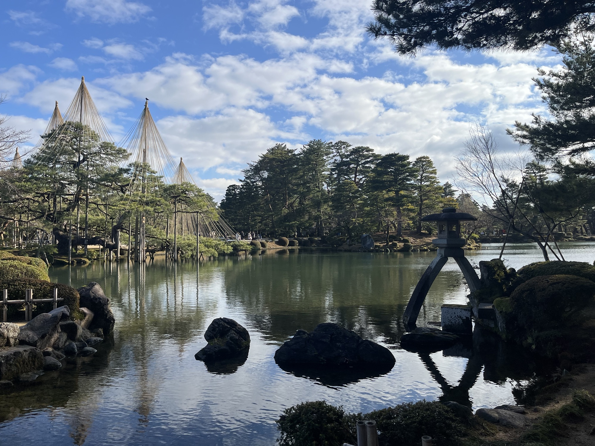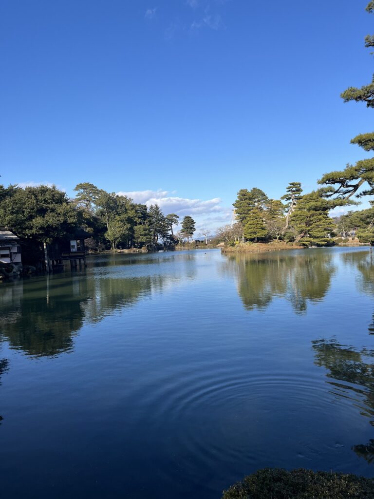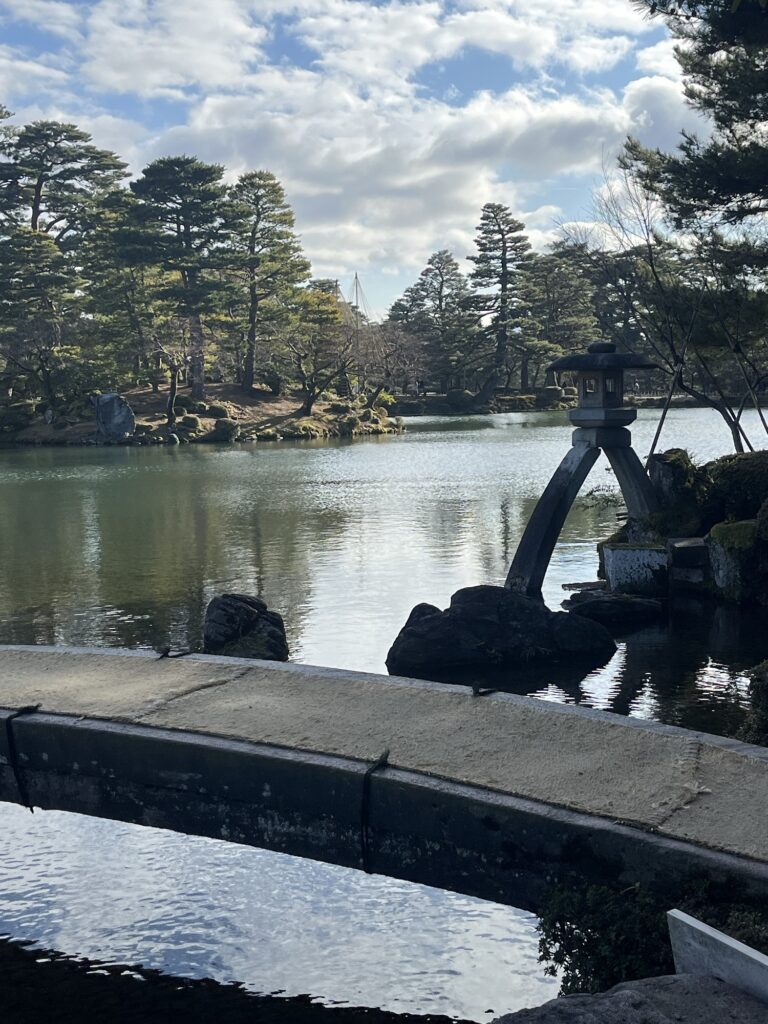 兼六園内で一番大きい池。池の中には蓬莱島という島が浮かんでいます。